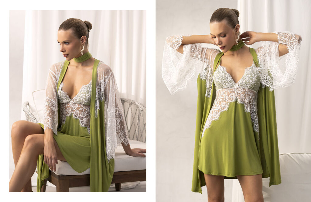Para complementar, o Robe Curto Feminino Maya acrescenta um toque de sofisticação com suas mangas translúcidas e detalhes rendados, compondo um conjunto que exala feminilidade e requinte em cada detalhe. Uma proposta que celebra o descanso com estilo e graciosidade.