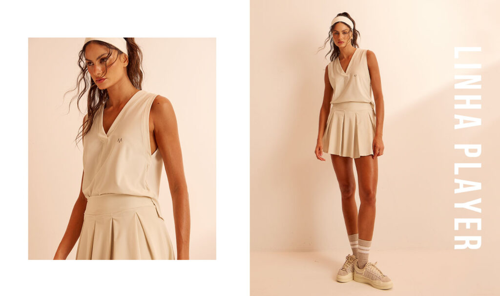 Os esportes de raquete conquistaram de vez o público que busca unir movimento, lazer e estilo de vida saudável. Seja na areia, na quadra ou no clube, práticas como tênis, padel e beach tennis vêm ganhando cada vez mais adeptos, e junto com essa tendência, cresce também o desejo por um visual moderno, funcional e cheio de personalidade. Pensando nessa mulher que vive o esporte com atitude e elegância, a Vivame apresenta a Linha Player: uma coleção criada em malha Smash, que combina a sofisticação do piquet com a performance do activewear. O resultado são peças que unem conforto, tecnologia e um toque de alfaiataria, perfeitas para quem quer brilhar dentro e fora da quadra.