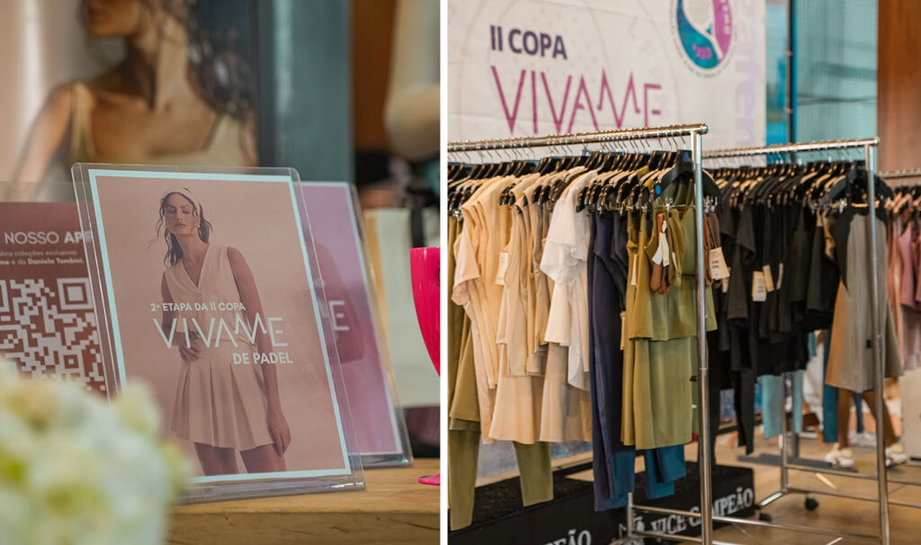 E para completar a experiência, tivemos vários looks expostos e disponíveis para venda no dia, permitindo que as participantes experimentassem de perto as peças, descobrissem novas combinações e levassem para casa um pouco da energia do evento. Entre saias, shorts, tops e conjuntos que unem tecnologia e beleza, o visual das jogadoras contribuiu para a atmosfera vibrante e inspiradora da Copa.