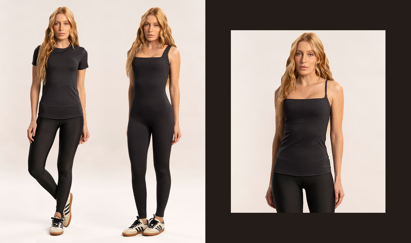 Para completar a Linha Essence, a coleção ainda conta com Camiseta, Regata e Macacão, todos desenvolvidos com as mesmas tecnologias do Sense Supreme. Peças versáteis, confortáveis e funcionais, pensadas para acompanhar sua rotina com liberdade de movimento, ajuste perfeito e estilo atemporal, ideais para o dia a dia, do treino aos momentos fora da academia.