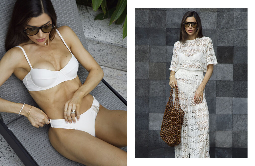Para completar o look, a Calça Riviera e a Blusa Feminina Riviera em rendão surgem como sobreposições versáteis, ideais para a piscina ou a praia, criando um visual leve, alinhado e cheio de intenção. Juntas, as peças se complementam de forma natural, criando um visual equilibrado e fácil de usar, que transita com leveza entre a piscina, a praia e os momentos além da areia.