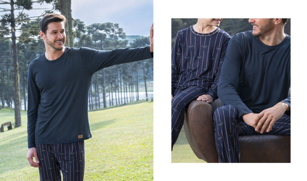 Para noites de puro conforto, o Pijama Masculino Longo Origens Tombini traduz a essência do bem-estar, conectado a sofisticação e aconchego. Inspirado na natureza e em suas raízes, ele combina tecidos leves e toque macio para envolver o corpo com suavidade, proporcionando momentos de descanso verdadeiramente revigorantes.
