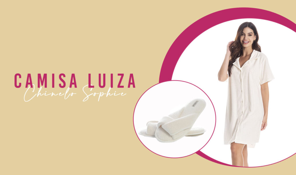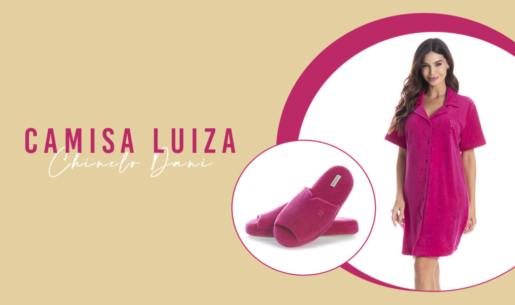 Com modelagem ampla e manga curta, a Camisa Luiza tem comprimento curto. Nossa escolha para que essa combinação continue super charmosa, foi o Chinelo Dani Colors. Confeccionado em atoalhado, é muito macio, confortável e de toque felpudo.